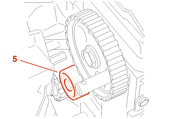 Peg the camshaft gear using the rod [3] .
