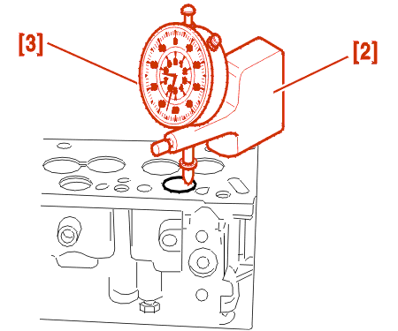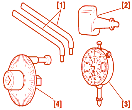 Fit the dial gauge to the bracket and calibrate it to the markings (Tools [2]-[3]) .