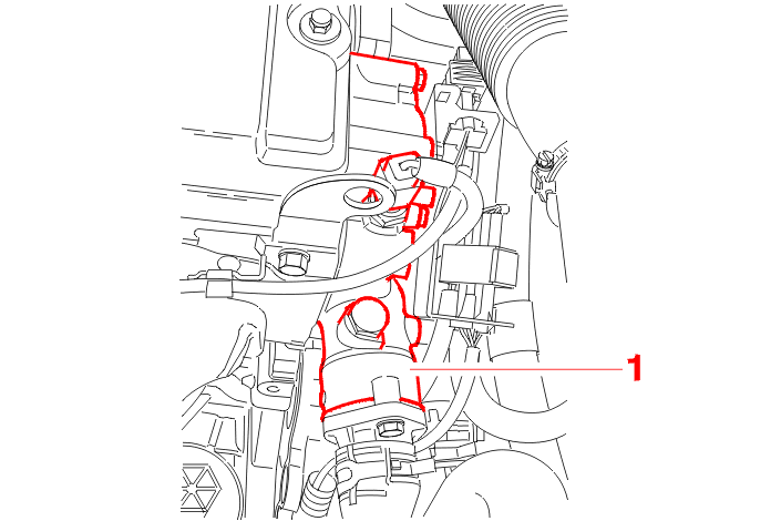 Later assembly : The water outlet housing (1) is made of a synthetic material and the bolts with washers are replaced with flanged bolts (which cannot be separated from the housing) .