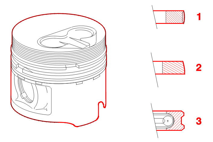 (3) Scraper ring : With spiral spring (Thickness 3 mm) .