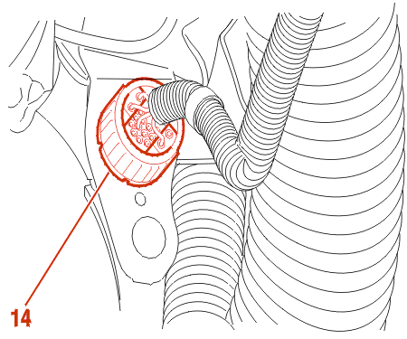 Disconnect the connector (14), Front left wing inner panel .