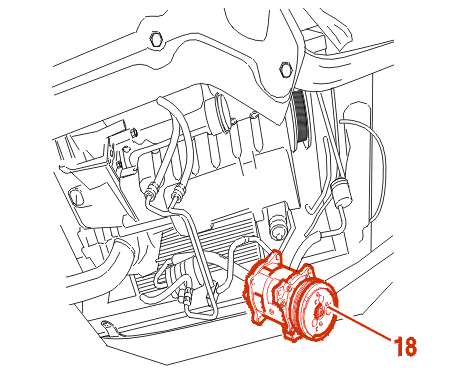 WARNING : the anti-rotation nut (31) secures the compressor at its upper rear end .