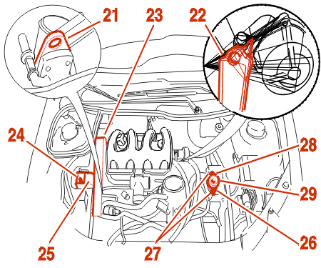 Disconnect, unclip and separate the harnesses, pipes and cables connected to the gearbox or engine .