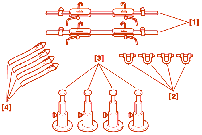 Position the two straps [4] fitted with their shackles [2] over the rear cross member .
