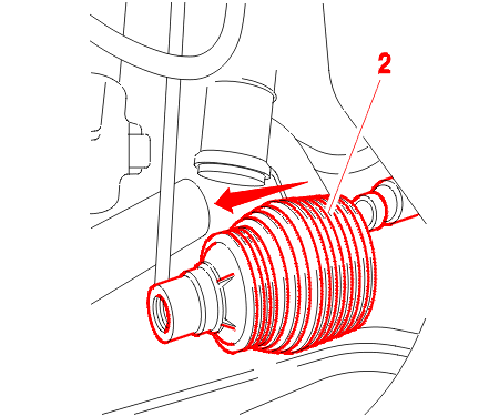 Unseat the pipe (1) from the gaiter (2) (According to specification) .