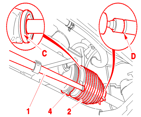 WARNING : position the mating surfaces of the gaiter correctly at (C) and (D) .