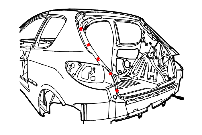 (5) Passenger compartment bottom rear closer .