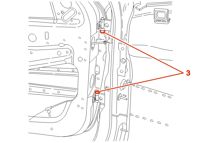 Open the door and tighten the door hinge mountings (5) .