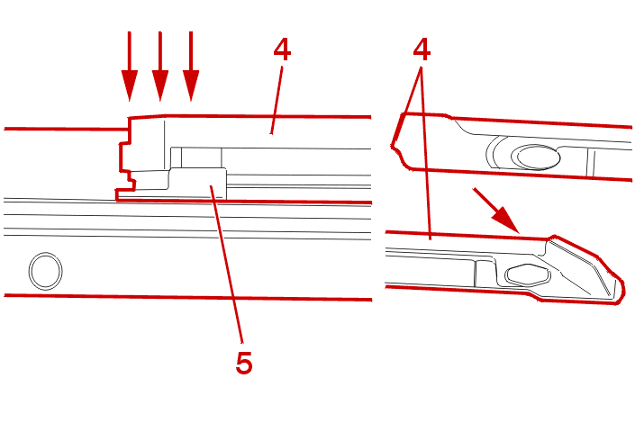 Unclip the drive guides (4) from the carriers (5) using a screwdriver .