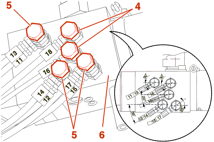 | mark(s) on the hydraulic pipe(s) | ||