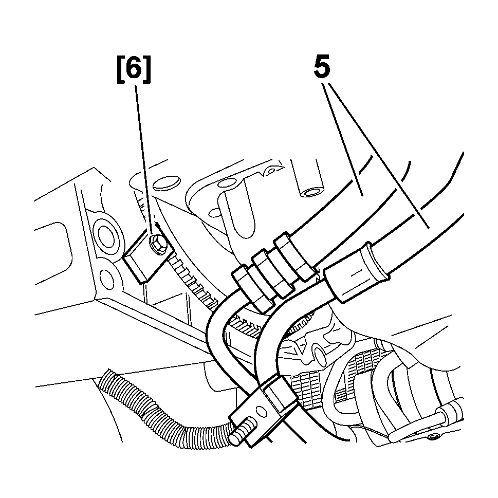 Unclamp and move aside the power steering pipes attached to the engine (5) .
