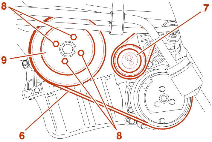 Fit the timing belt, fully taut, in the following order :