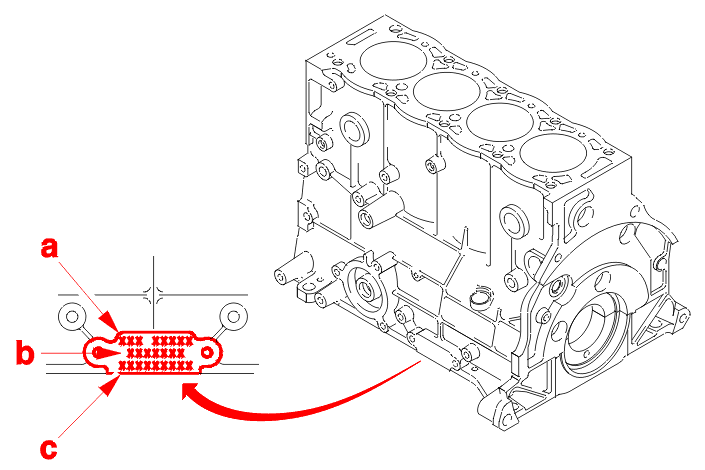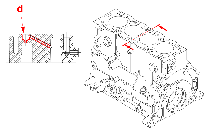 (e) Identification area : 2 holes, diameter 9, below the injector housing (cylinder no. 1 and no. 3) .
