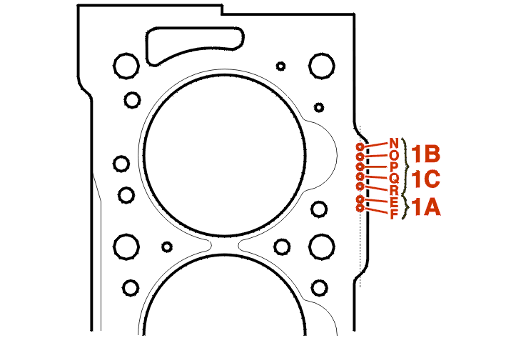 Select the thickness of the cylinder head gasket in relation to the protrusion of the pistons (Identical to XUD engine) .