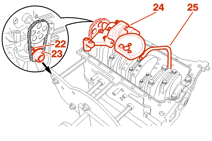 NOTE : for engines fitted with an aluminium oil sump, check that the dowel pin (30) is present .