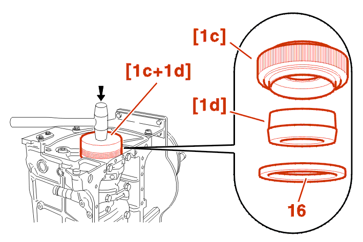 FIT A NEW OIL SEAL (16) USING THE TOOL [1C + 1D] .