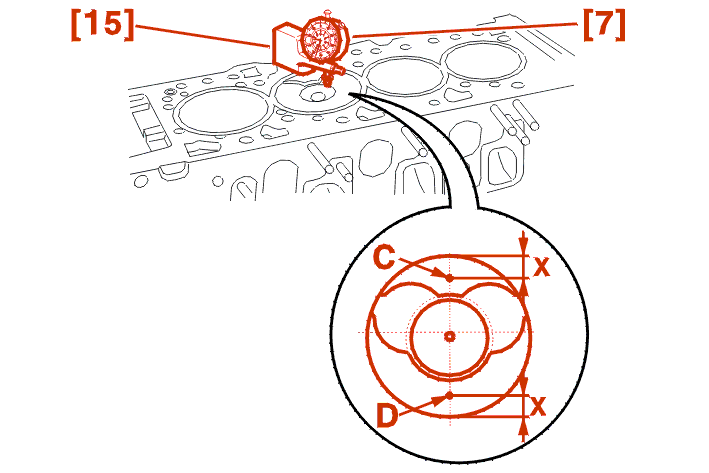 Place the needle of the dial gauge on one of the checking points (Checking point D) .
