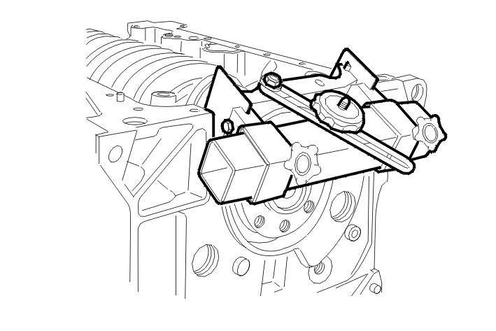 SCREW THE TWO THREADED RODS OF THE TOOL [1K] INTO THE CRANKSHAFT .