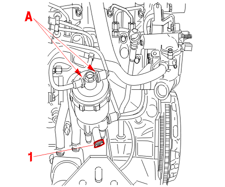 Clean the connectors on the fuel filter assembly at (A) : USING THE TOOLS [2] - [3] - [4] .