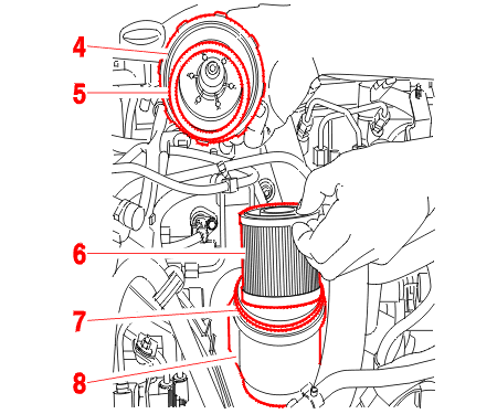 Replace the filter element chamber (8) .