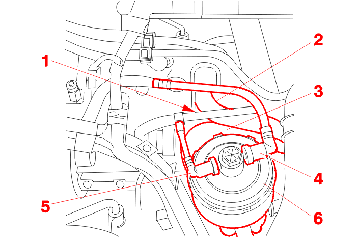 Disconnect, block and move aside the pipe(s) (4) - (5) : USING THE TOOLS [1] - [6] .
