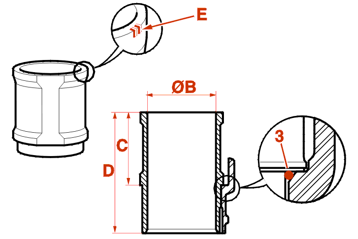 | TU2J2 - TU3 | 75 to 75,01 | 75,01 to 75,02 | 75,02 to 75,03 | 90 ± 0,015 | 135,4 |