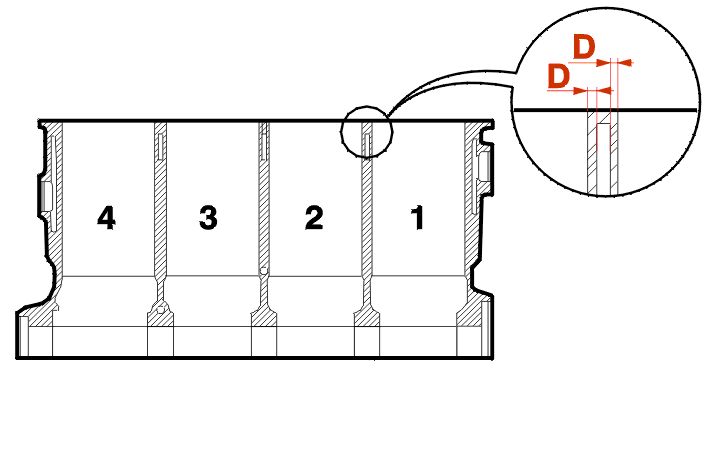 IMPERATIVE : grinding authorised only if it is possible to accurately determine the value (D) of each cylinder (2,2 mm minimum) .