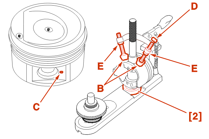 IMPERATIVE : when positioning the piston on the support [2], position the surface with the boss (C) upwards .