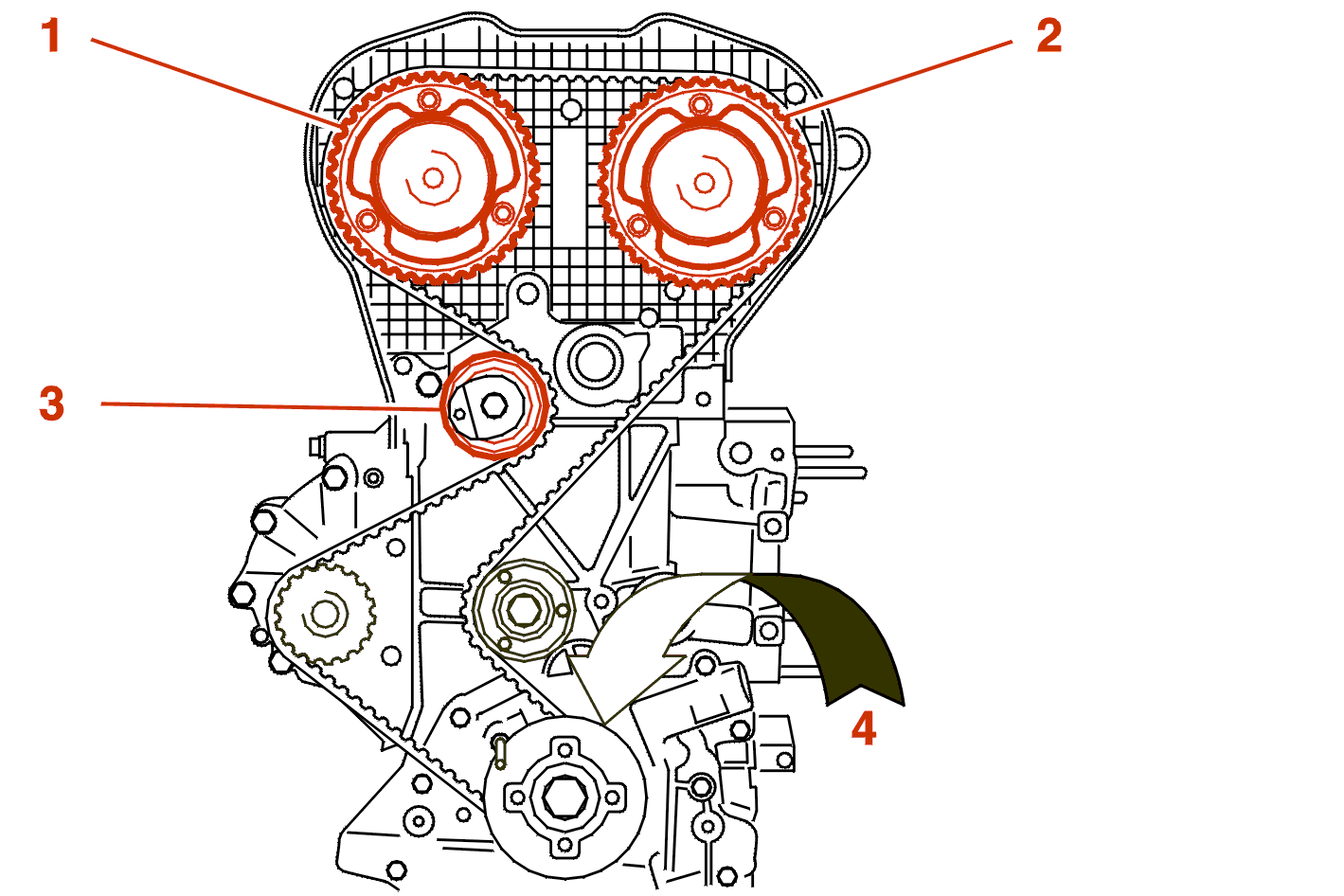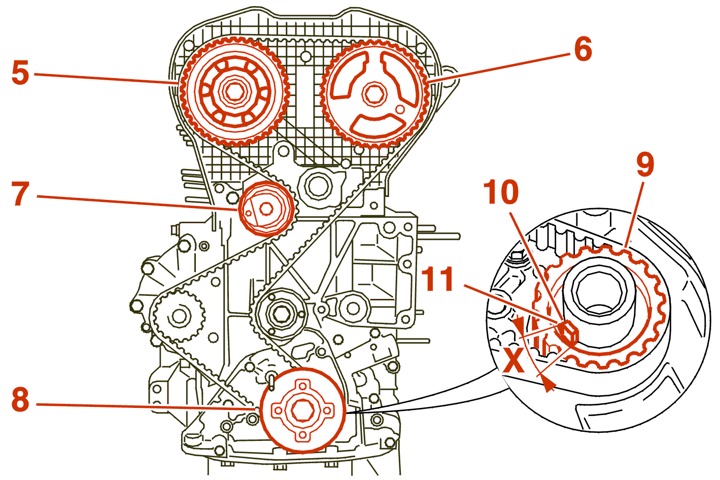 (6) Fixed intake camshaft pinion .