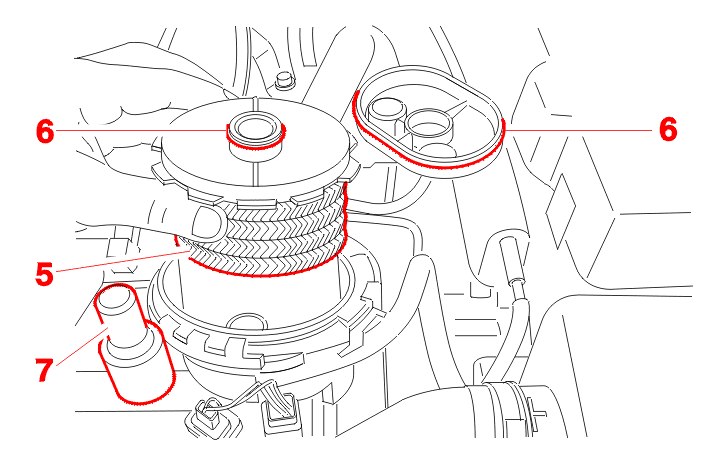 Remove the fuel filter (5) .