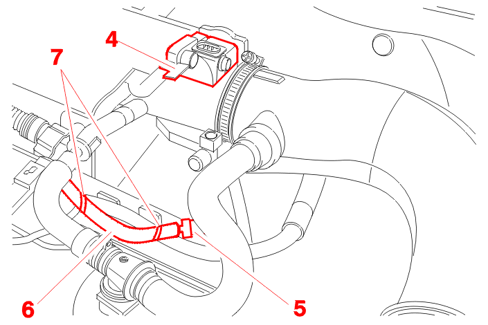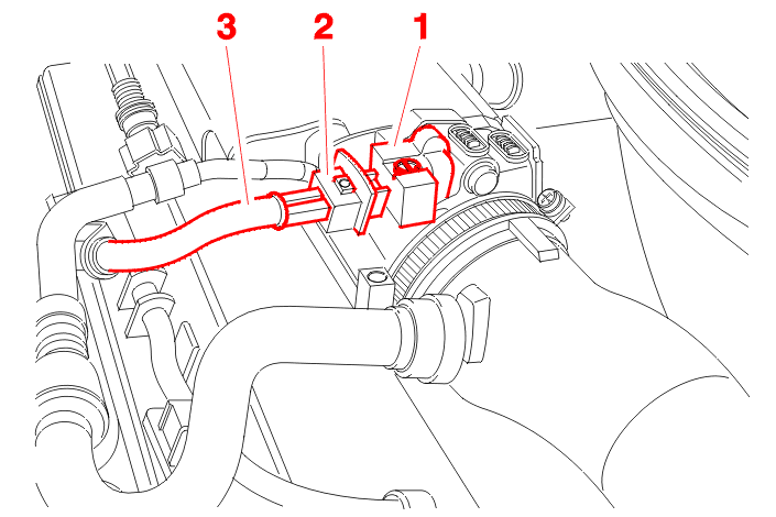 IMPERATIVE : replacement of the throttle housing (4) : close the heater supply harness connector using the diagnostic plug bracket .