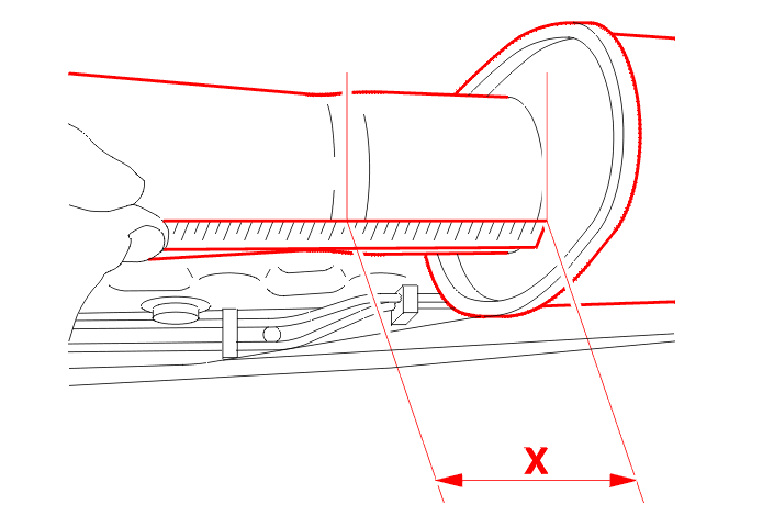 NOTE : if the indentation is not visible, cut off the line of the intermediate silencer at X = 170 mm .