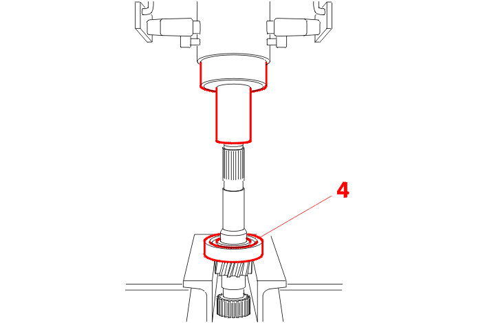 Fit the new bearing (3) on the 4th gear side .