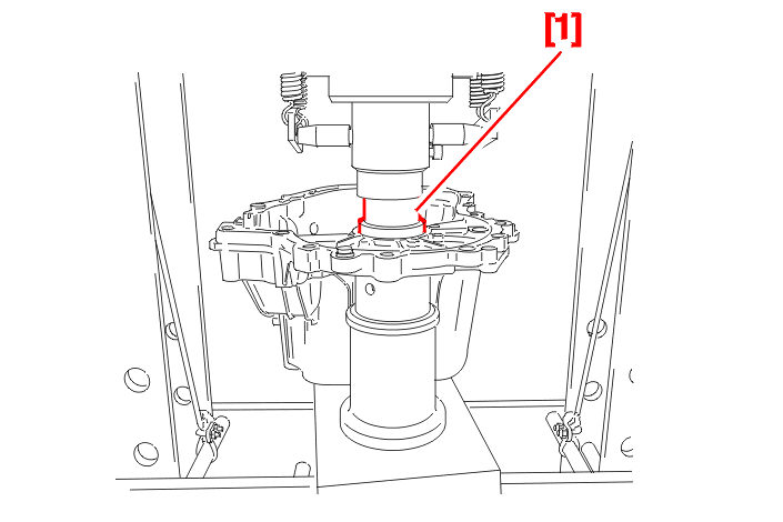 Fit the new final drive left hand bearing outer race (1) using the tool [1] and a press .