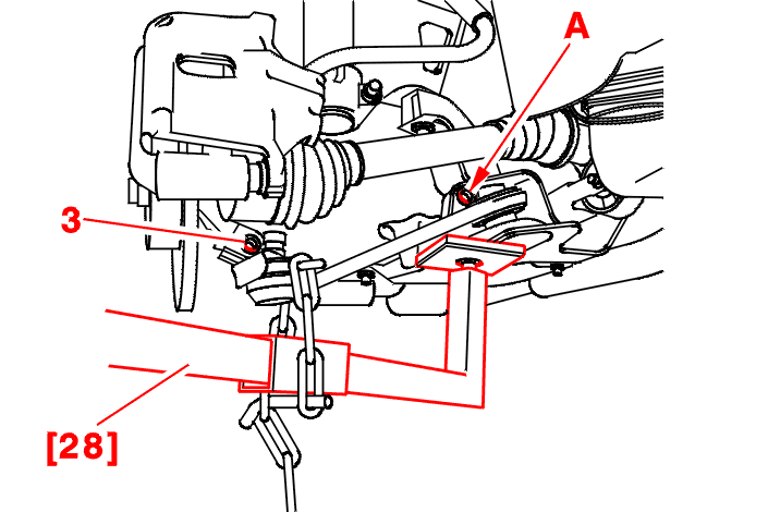 Place a nut or a pin at (A) to immobilise the lower wishbone in a low position .