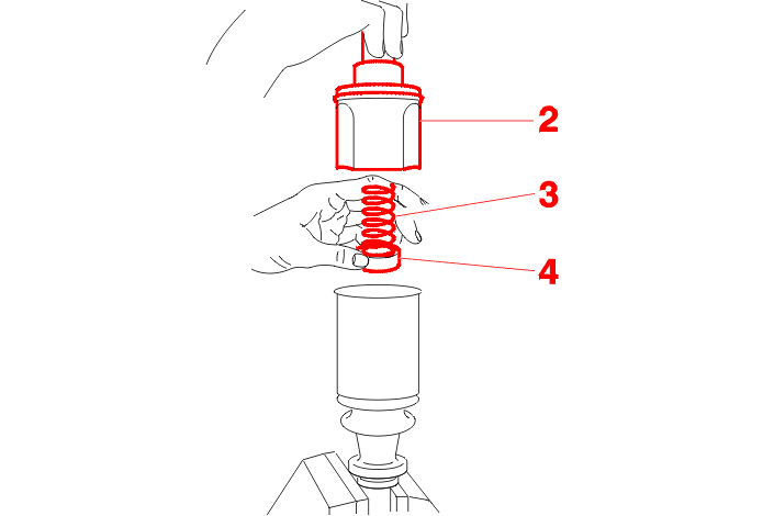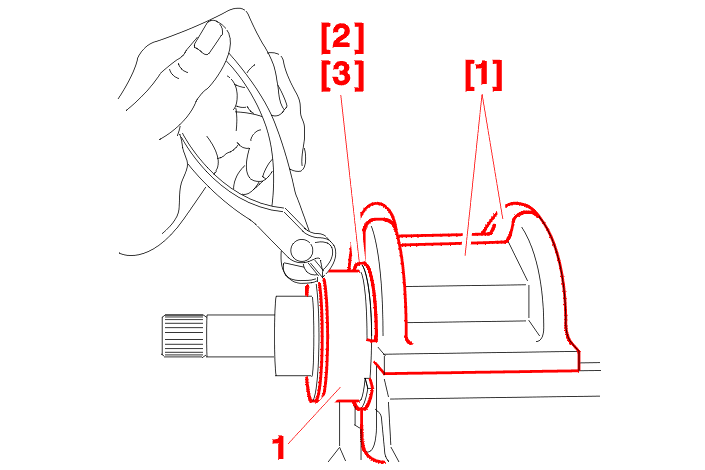 Place the drive shaft in a vice using tools [1] and [2] or [3], depending on the diameter of the spider housing .
