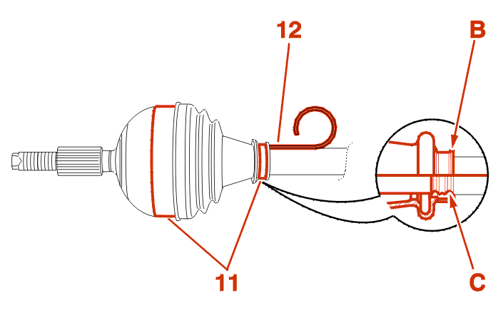 For driveshafts which do not have a positioning groove (C), Mark the position of the gaiter (B) .