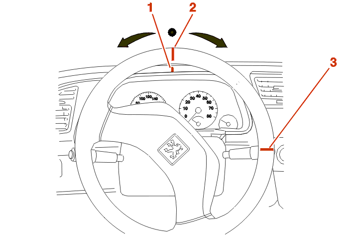 Make a mark (1) on the fascia and a mark (2) on the steering wheel opposite the first mark .