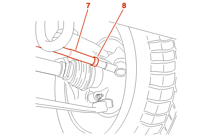 If the value is incorrect, adjust the track rods (7) (one turn of the rod = 2 mm approximately) .