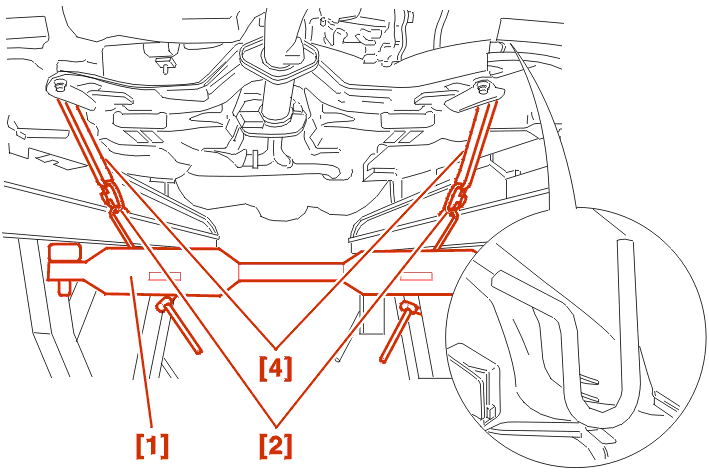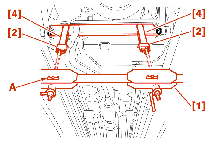 Position the two straps [4] fitted with their shackles [2] over the rear cross member .