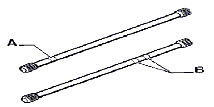 Left hand bar : two paint rings (B) .