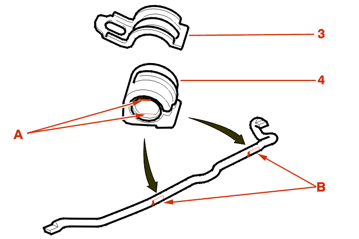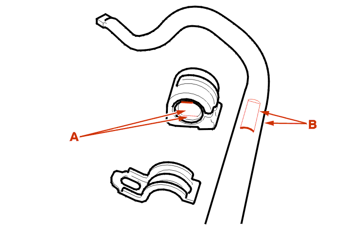Align the internal flats (A) with the mouldings (B) on the anti-roll bar (one on either side) .