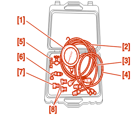 Connect the pressure gauge [1] .