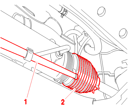 Unseat the pipe (1) from the gaiter (2) (According to specification) .