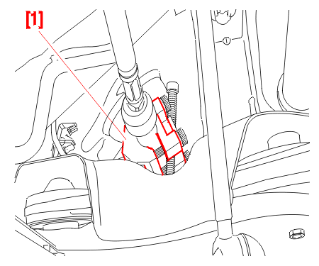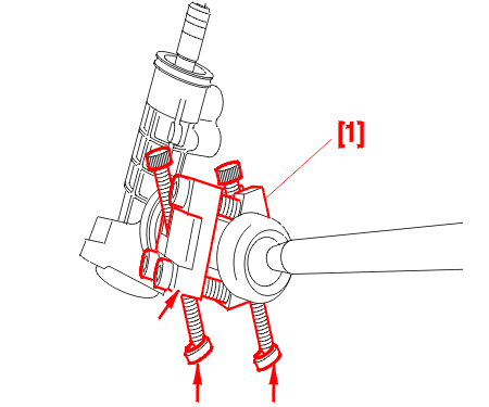 NOTE : in the case of replacement of the connecting rod on the opposite side to the pinion, remove the gaiter but leave the tool [1] in place on the pinion side .