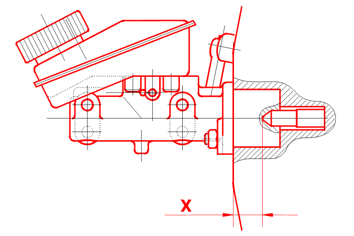 NOTE : check the brake servo unit piston rod recess : X = 22.3 ± 0.1 mm (this measurement is taken between the master cylinder support face and the head of the piston rod) .