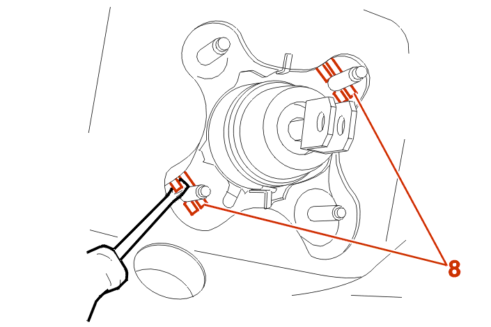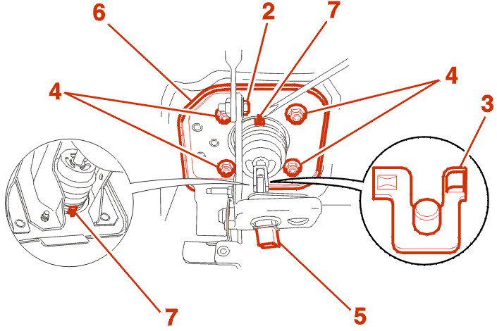 Remove the pedal bracket (6) while moving aside the clips (7) .