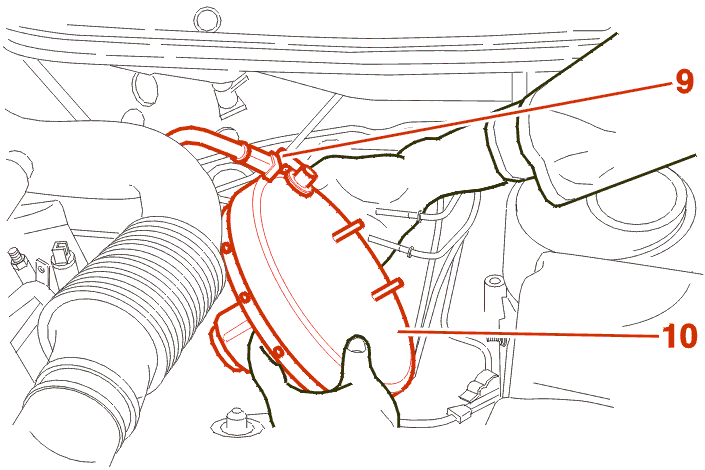 Uncouple the vacuum pipe (9) from the brake servo unit .