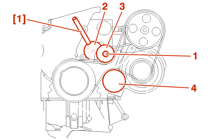 Pin the dynamic tensioner (2) using the tool [1] .