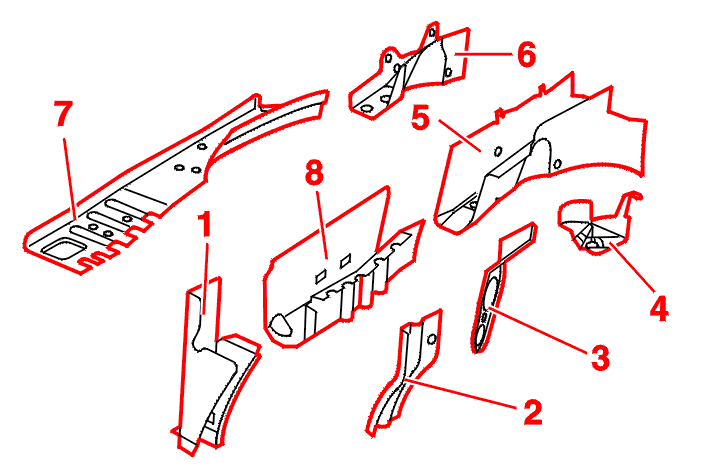 [1] Template for rear cut (Centre chassis leg), Reference (-).1117 A .